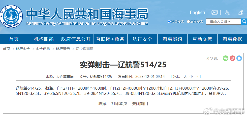 据中国海事局网站消息,大连海事局发布航行警告,12月1日12时至18时、12月2日8时至12时、12月3日9时至12时,渤海部分海域进行实弹射击浙江股票配资,禁止驶入。